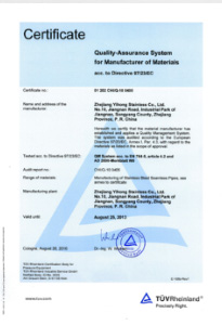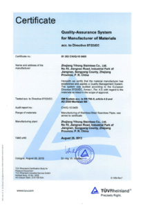 公司嚴(yán)格按ISO9001:2015《質(zhì)量管理體系—要求》、ISO14001:2015《環(huán)境管理體系 要求及使用指南》、ISO 45001:2018《職業(yè)健康管理體系 要求及使用指南》和TSG 07—2019《特種設(shè)備生產(chǎn)和充裝單位許可規(guī)則》,建立完善的管理體系。公司擁有國內(nèi)較大的12000KN冷拔機組和先進的全溫控不銹鋼固溶退火爐等生產(chǎn)設(shè)備,同時具有ET16-159渦流探傷儀、UT16-159超聲波探傷儀、UT159-830超聲波探傷儀、H159-630水壓試驗機、WAD—600液壓材料試驗機、4XB電腦金相顯微鏡、JQ—300沖擊試驗機、HBRVU—187.5硬度計、島津光譜儀、化學(xué)分析儀、晶間腐蝕試驗等完善的檢測設(shè)備。